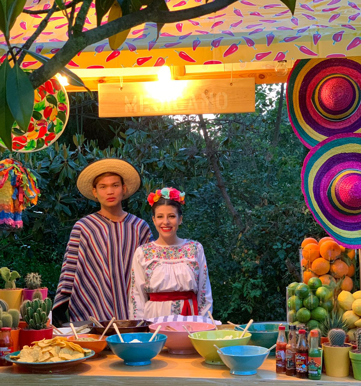 Puestos decorados al estilo de cada país, con los platos favoritos de cada familia.